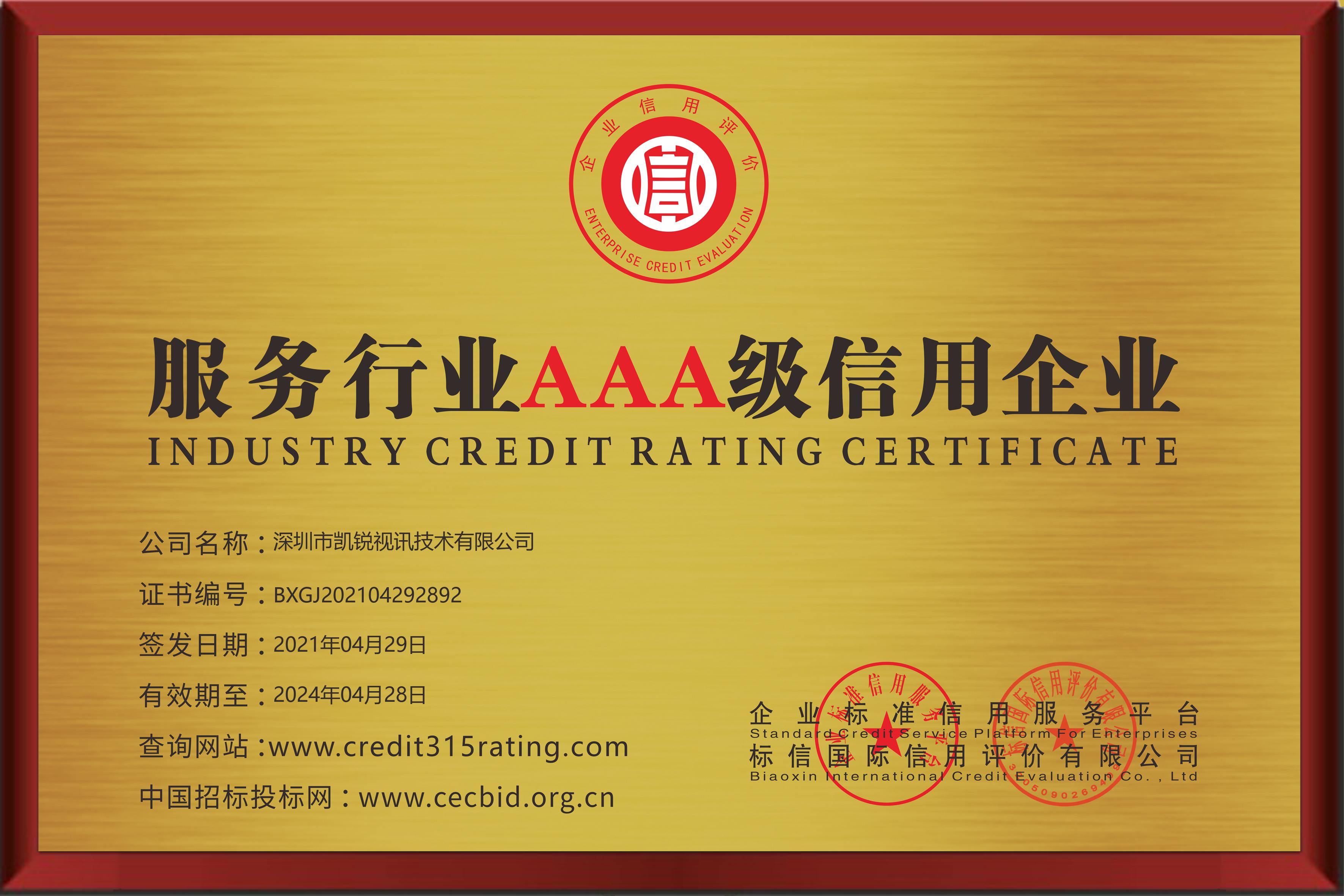 服务行业AAA级信用企业