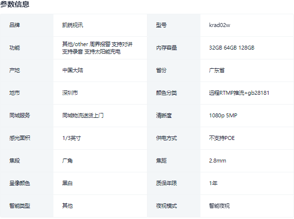 产品参数:● 品牌: 凯锐视讯● 型号: kr-jly02w● 焦距...