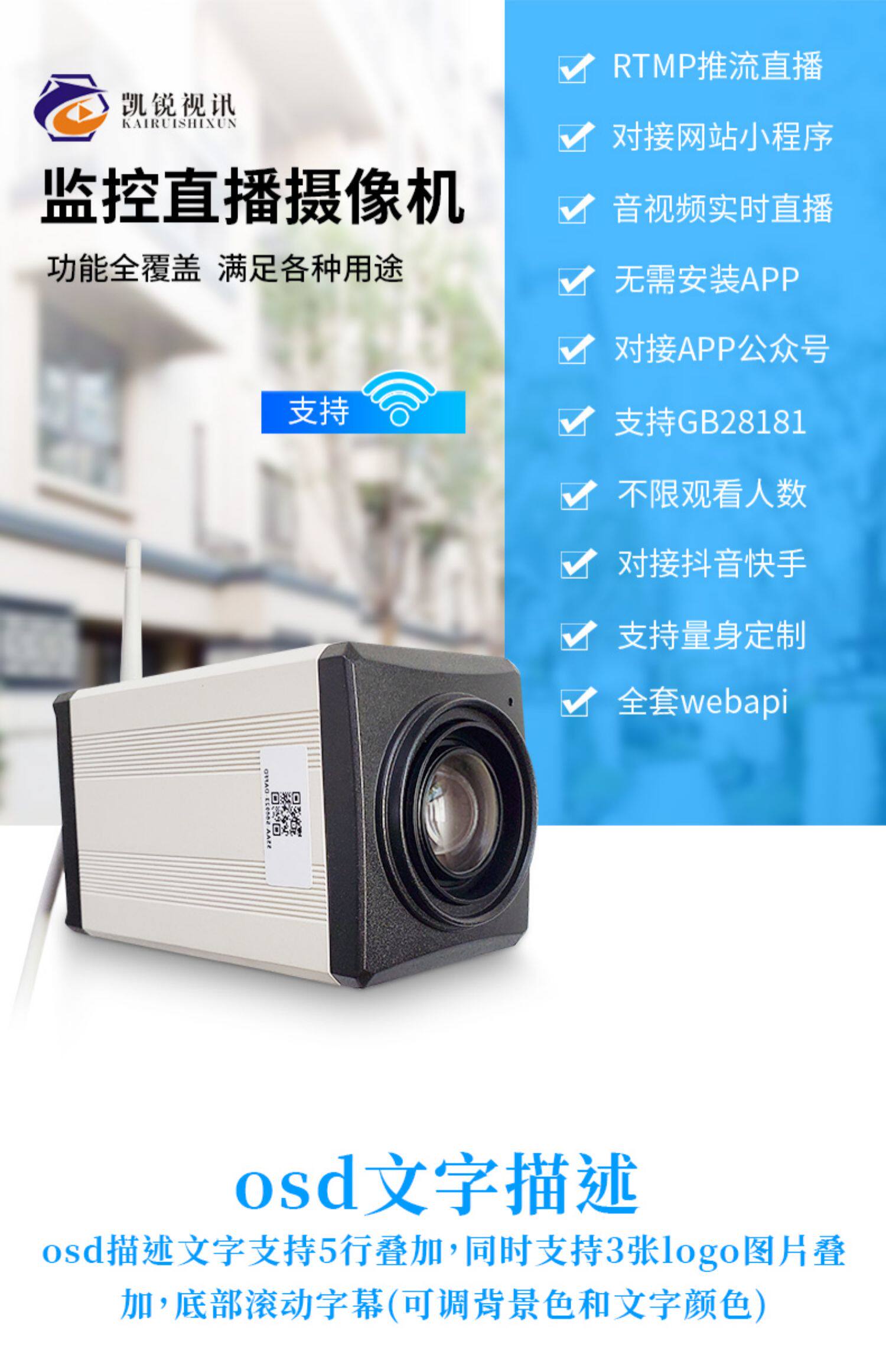 凯锐视讯4g无线WiFi推流rtmp高清直播监控摄像头云台半球支持巡航