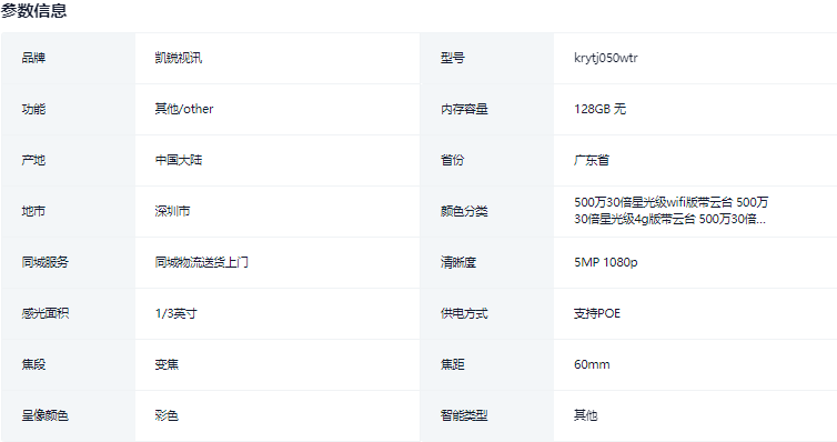产品参数:● 品牌: 凯锐视讯● 型号: kr-jly02w● 焦距...