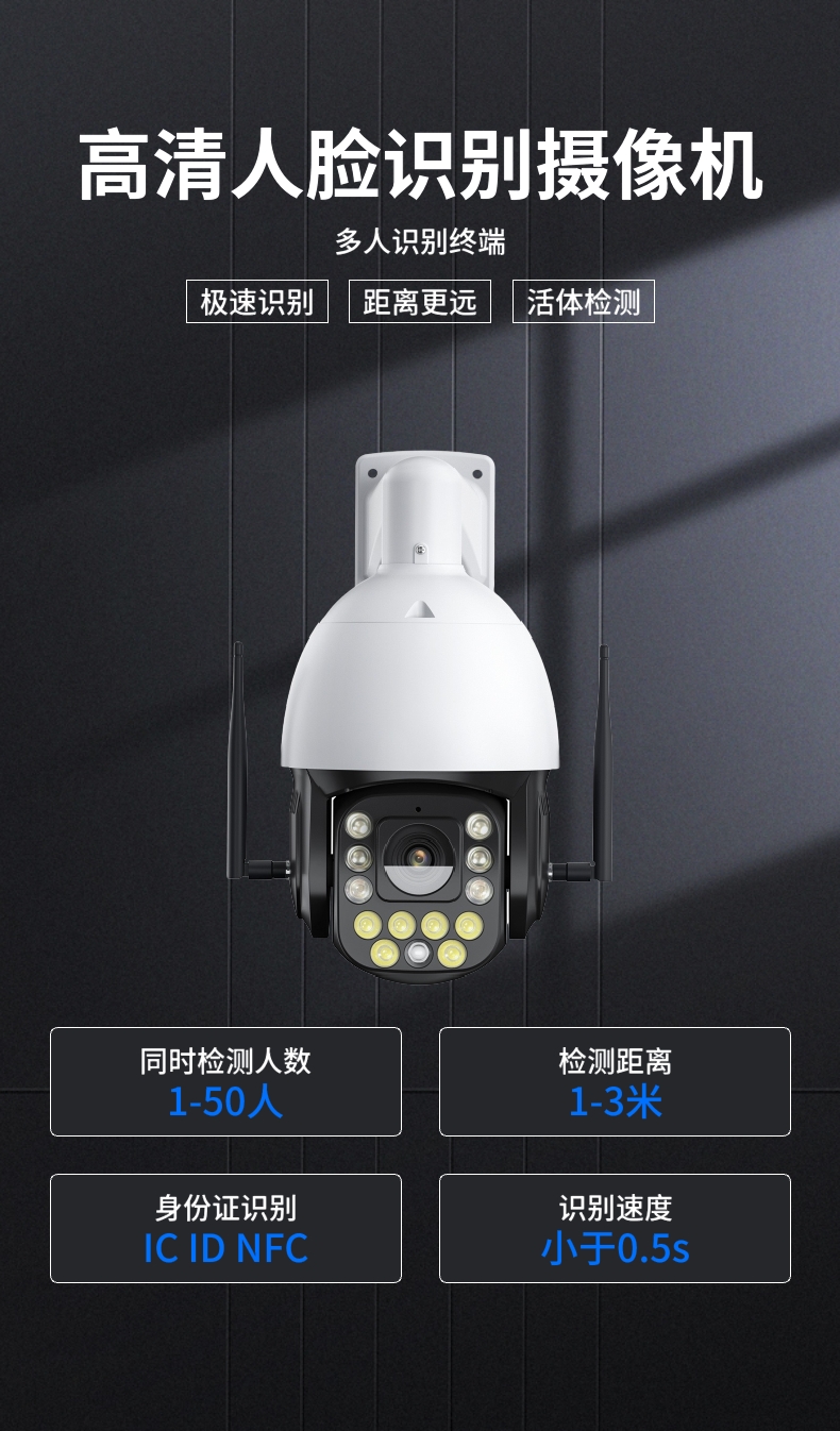 无感人脸识别RTMP推流摄像机考勤门禁自动刷脸打卡系统一体摄影头