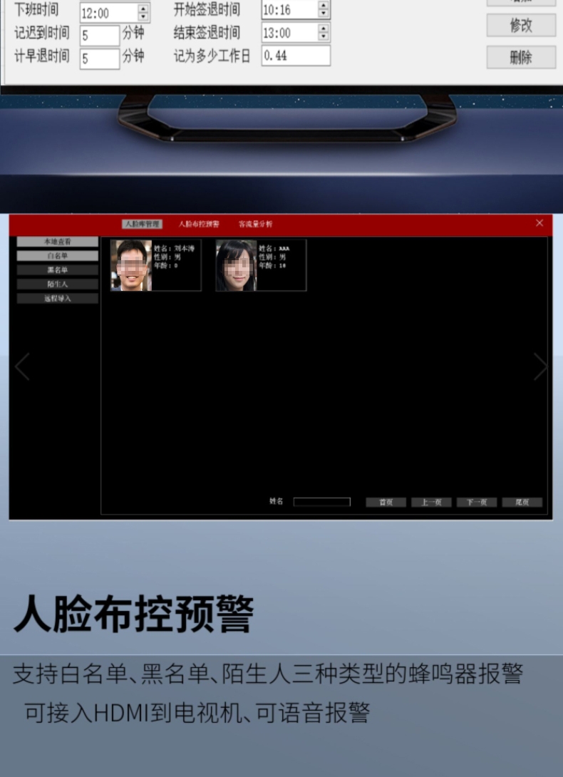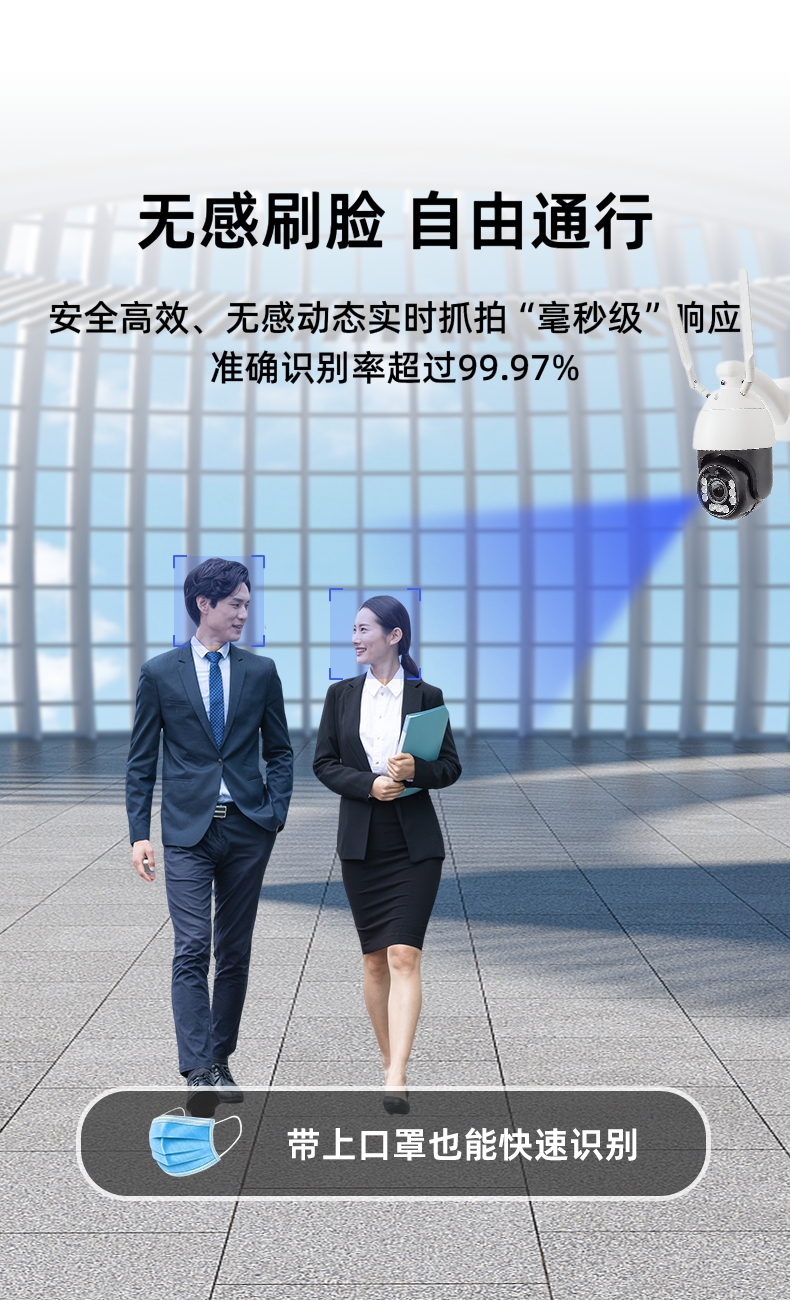 无感人脸识别摄像机考勤门禁自动刷脸打卡系统一体摄影头RTMP推流