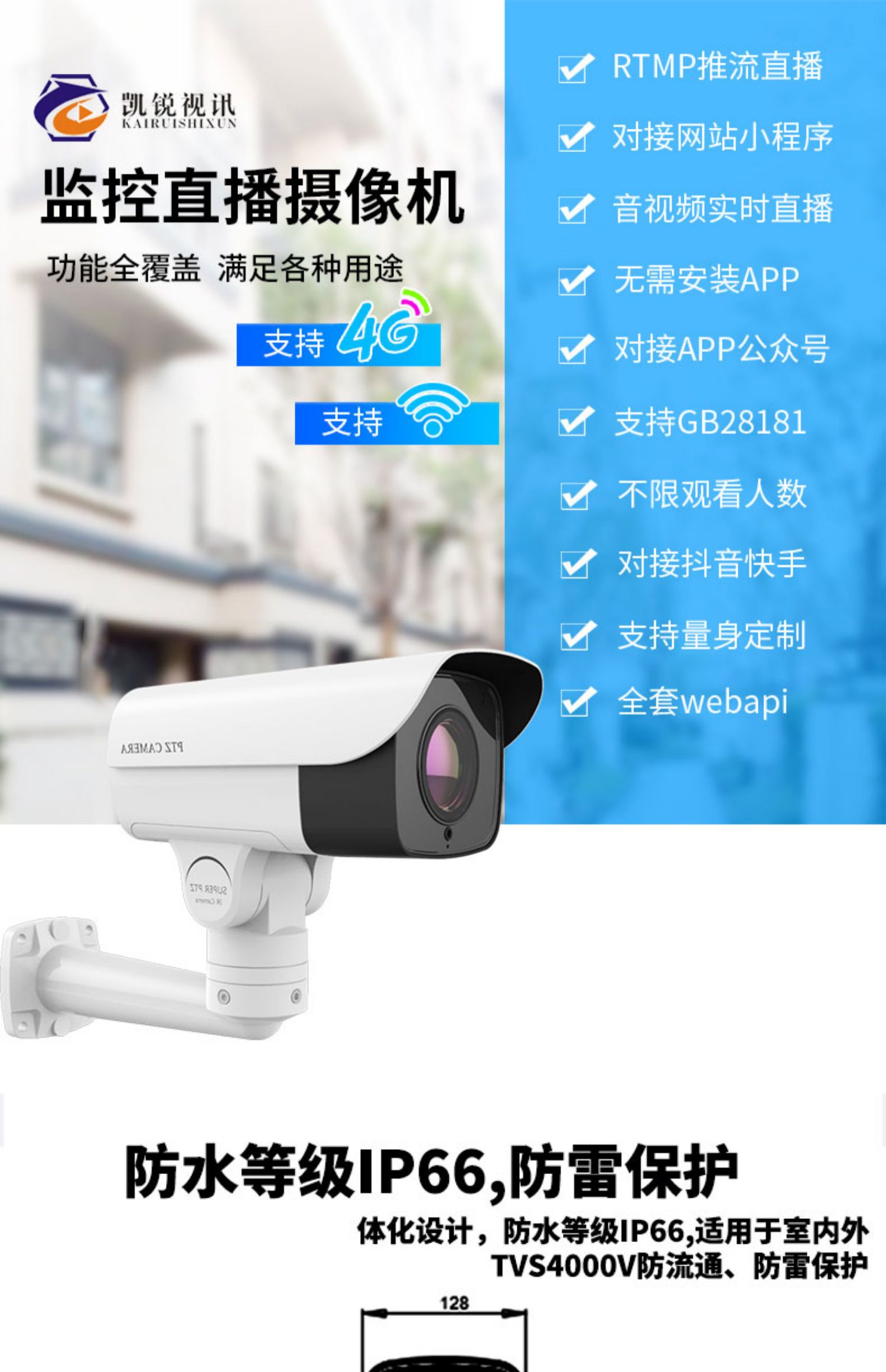 凯锐视讯4g监控摄影低功耗移动防水布控球远程推流无线电池摄像头